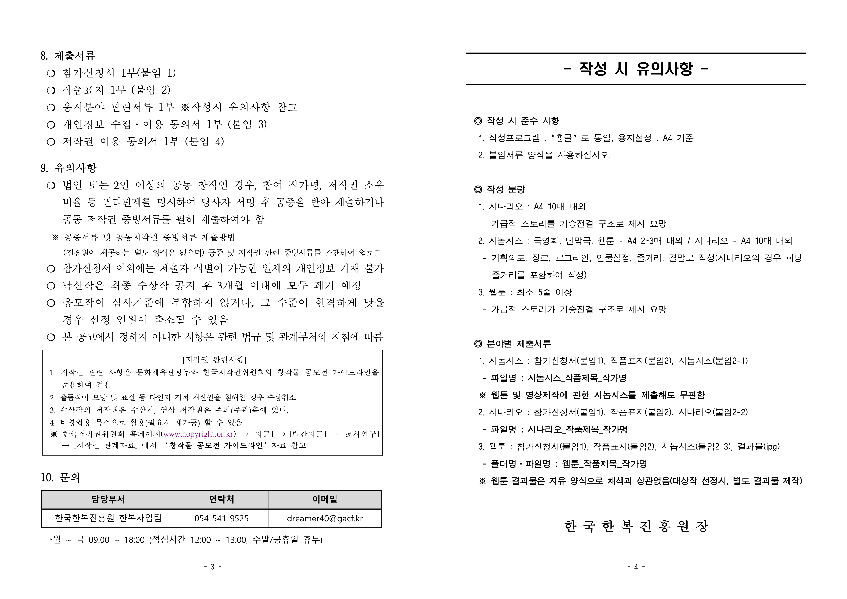 한복문화산업 발전에 기여코자 「2023 한복문화콘텐츠 시나리오·웹툰」