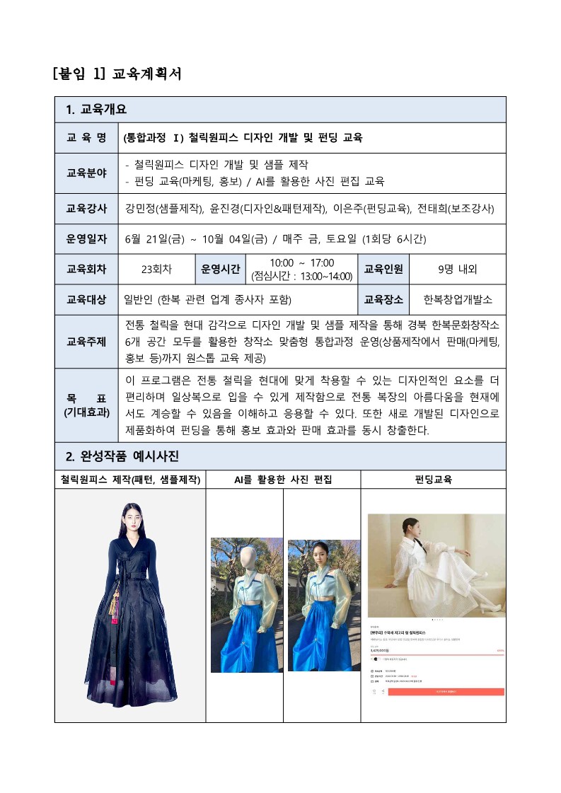 (통합과정Ⅰ) 철릭원피스 디자인 개발 및 펀딩 교육