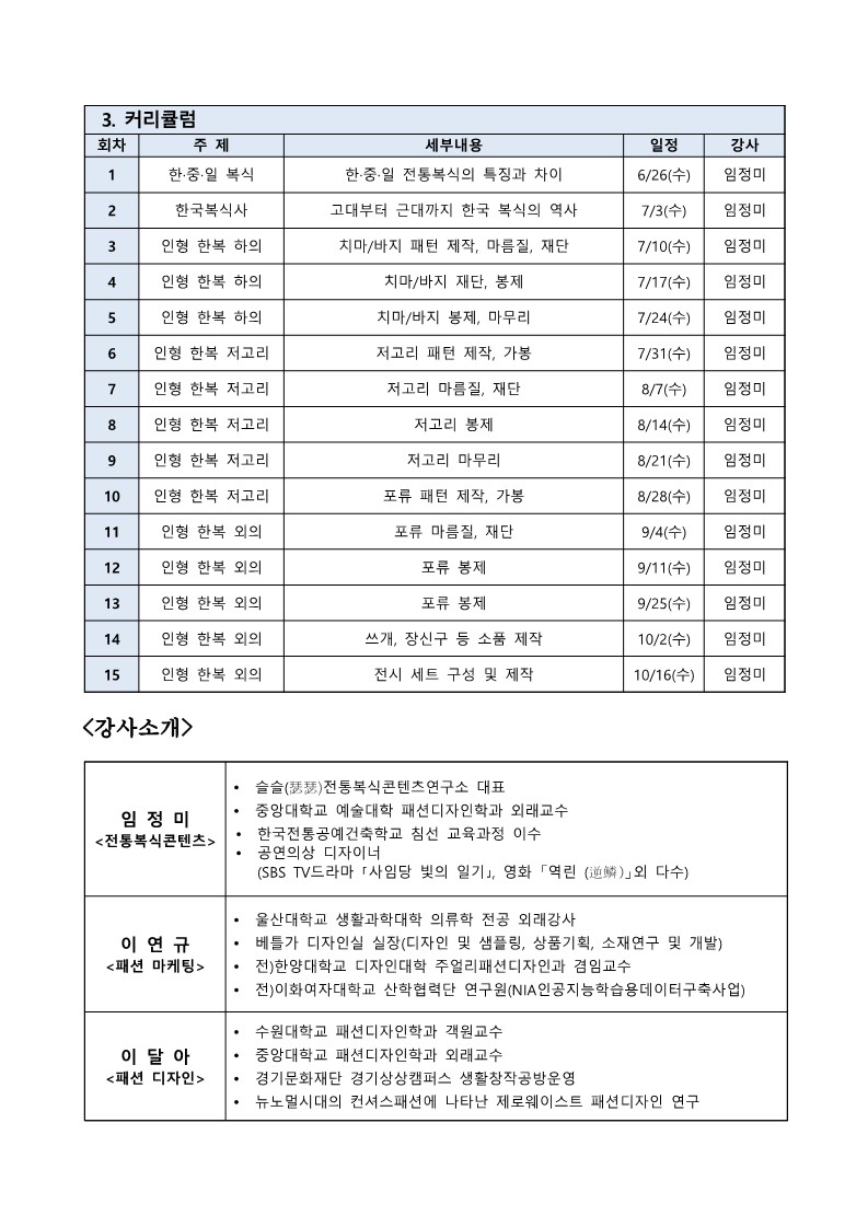 한복전문가 양성교육