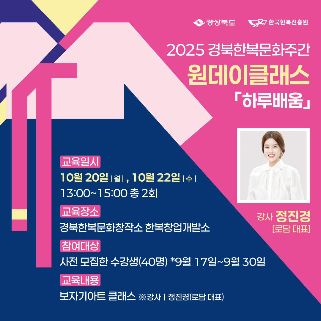 10월 22일(수) 「2025 경북한복문화주간」 원데이클래스 [하루배움] - 보자기아트